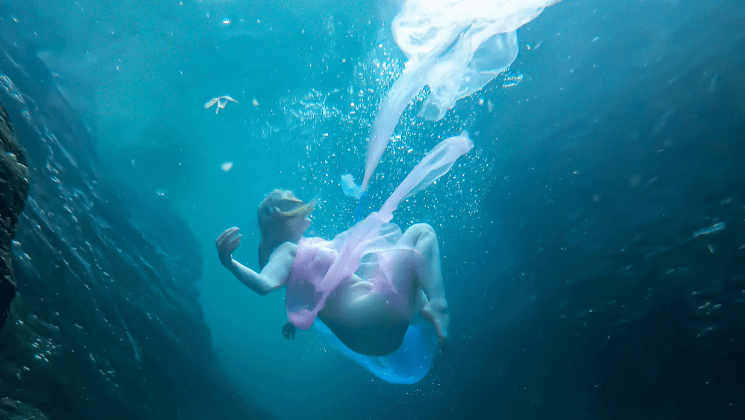 Professional mermaid, advocate, and businesswoman Laura Evans is a force to be reckoned with. The underwater artist from St Ives can often be found exploring Cornwall’s tidal pools or collecting discarded windbreaks found on our beaches. Prior to COVID, she made frequent appearances across the St Ives coast, dubbing a fully-functioning mermaid tail – yes, you read that right! Last year, she opened her shop ‘Oh Give Me a Break’, and her colourful bags have been making appearances across the region. We caught up with her to talk about all things mermaiding, body acceptance, and sustainability.